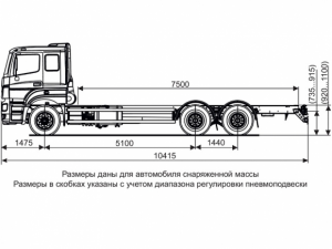 Шасси 6*4, длина рамы 7 560 мм, грузоподъемность 16 тонн