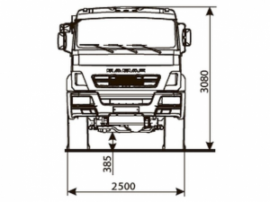Шасси 6*4, длина рамы 5 970 мм, межосевое растояние мм, грузоподъемность 12 тонн