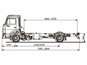 Шасси 6*4, длина рамы 5 970 мм, межосевое растояние мм, грузоподъемность 12 тонн